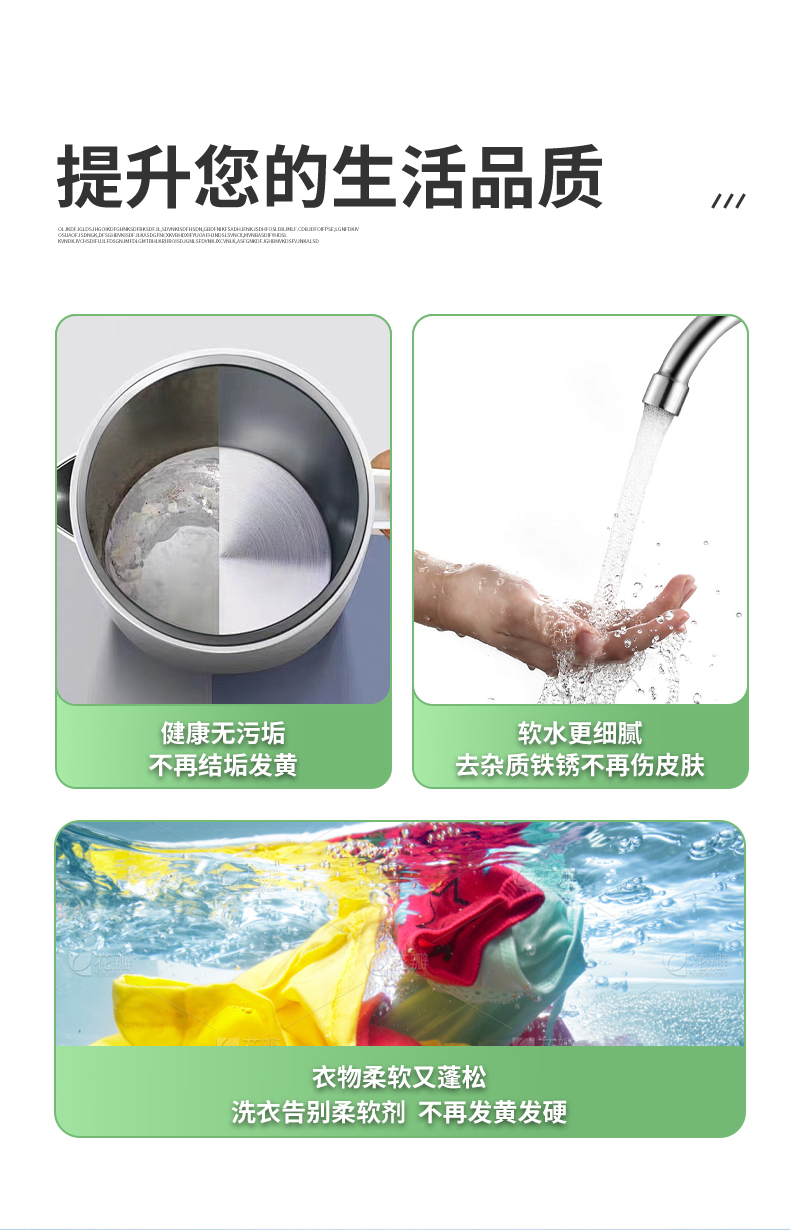 使用方法:將軟水鹽拆包后倒入軟水機(jī)儲(chǔ)鹽罐中,總量不超過(guò)鹽箱的3/4,初次使用請(qǐng)加一碗水,利于鹽的融化。